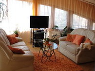Lakás: (2 fős): amerikai típusú lakószoba kanapéval, színes LCD SAT-TV-vel, étkező és konyha résszel, hálószoba franciaággyal 2 fő részére, fürdő/tusoló WC-vel, terasz, tároló